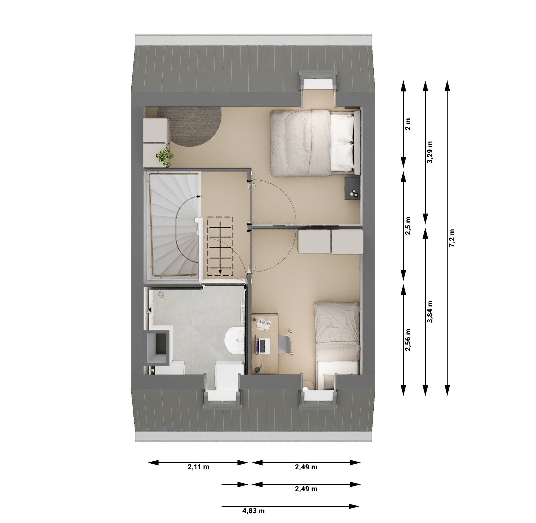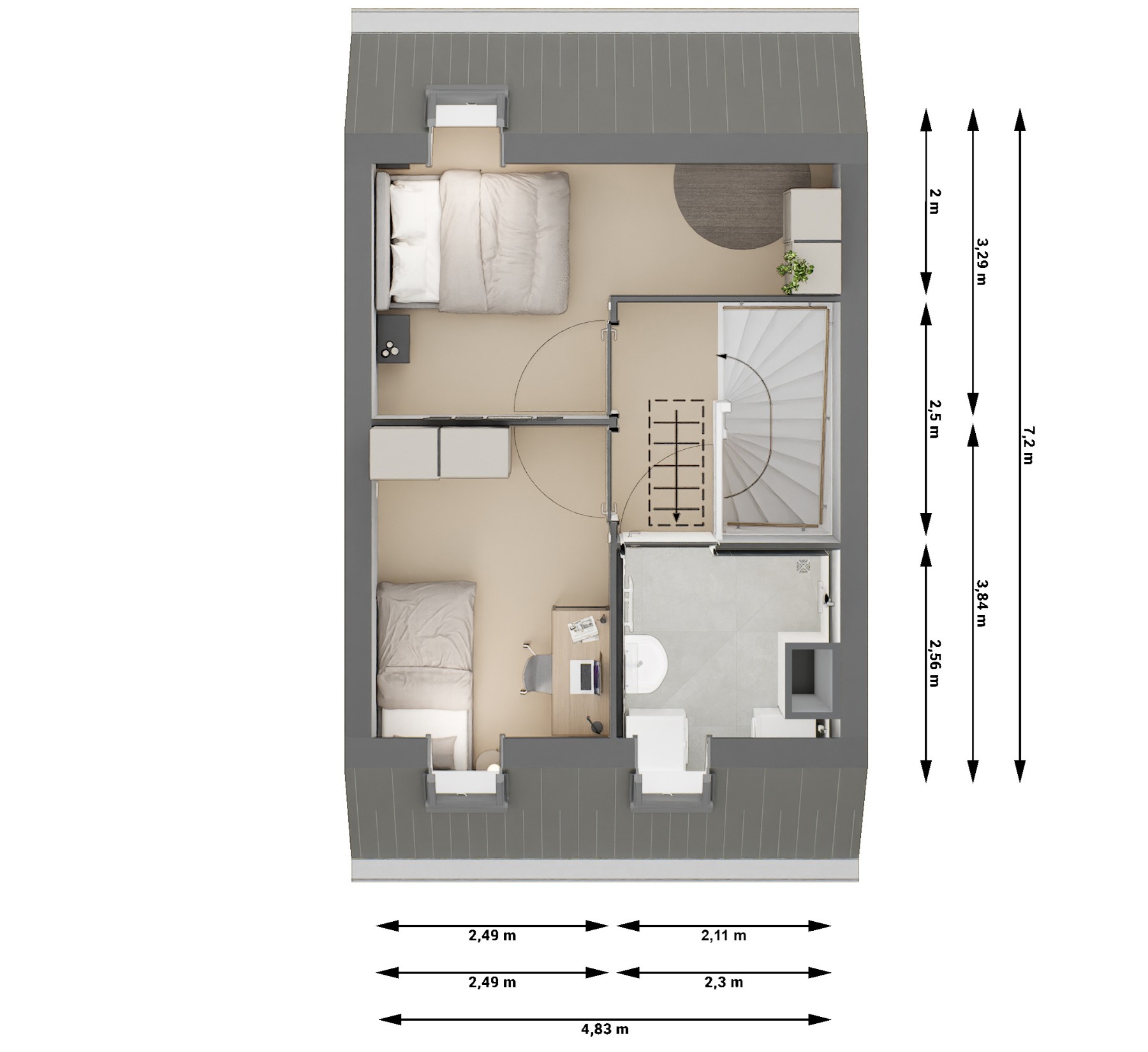De Madelief heeft twee slaapkamers op de eerste verdieping en een vliering onder de kap. Handig voor opslag van spullen die je niet dagelijks nodig hebt, maar wel bij de hand wilt hebben.